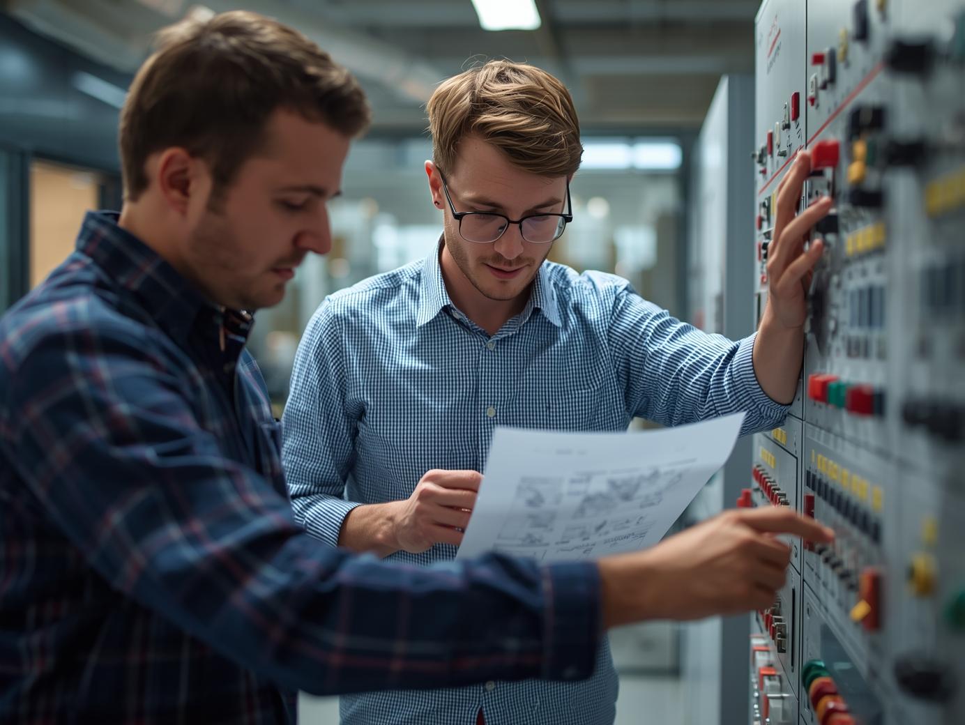 geef elektrotechniek en E&I weer in een bedrijf met echte mensen, geen tekening, laat zien wat ze doen
